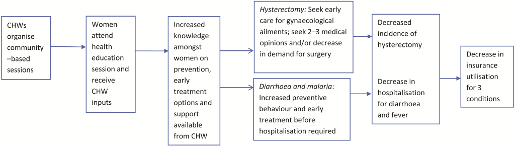 The high proportion of insurance claims utilised for seemingly preventable illnesses emphasises the need for design and evaluation of scalable, community–based strategies to address common causes of hospitalisation amongst low–income women. The wide coverage and reach of CHWs in India, particularly government ASHAs, is a potential opportunity to reach women with preventive health interventions. Our evaluation suggests that, while CHW–led health education was not sufficient to reduce hospitalisation, strategies that capitalise upon CHW strengths – their position in the community, practical skills and local knowledge – should continue to be experimented with for their potential to strengthen health systems and improve women’s health outcomes.
