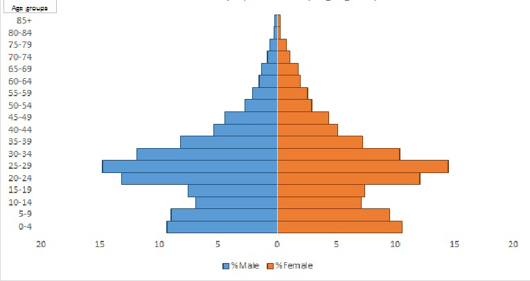 VaduHDSS currently includes 160 000 individuals residing in 22 villages of Shirur and Haveli Block of Pune district in Maharashtra, India. VaduHDSS has experienced a rise in the population from an initial 50000 in 2002 to 160000 in 2018. While VaduHDSS area was primarily an agrarian community in 2002, today a significant proportion of population is employed in industries. Rapid growth of industries has resulted in newer occupational opportunities [4,5] leading to in-migration of younger generation from all over the country, which is indicated by the bulging mid-section of the population pyramid (Figure 1). The following conceptual framework (Figure 2) describes how VaduHDSS is inclusive in its approach and how the population is central to its activities.