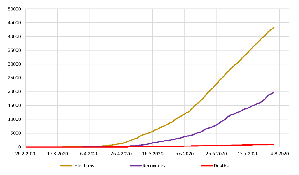 Severe acute respiratory syndrome coronavirus 2 (SARS-CoV-2) is the etiological agent of coronavirus disease 2019 (COVID-19). COVID-19 virus was first reported in Wuhan China in December 2019 but has since taken a pandemic course affecting all parts of the world. As of August 2, 2020, the World Health Organization (WHO) has reported 17 660 523 cases worldwide including 680 894 deaths [1]. In Nigeria, the index COVID-19 was reported on February 27, 2020 [2]. This extension of the pandemic to Nigeria elicited an overwhelming response of panic and fear sweeping across the nation. Social media has tremendous impact on the Nigerian public’s collective perception, knowledge and attitude about COVID-19. In this case of COVID-19, it has probably done more harm by its generation of gratuitous alarm and exploitation as evidenced by the spread of fear, offer of fake cures, and the dismissal of medical advice [3]. This is further exacerbated when these misleading messages are endorsed by influential people [4]. Consequently, in an effort to quell this tide of disinformation and soothe the fears of ignorant Nigerians buried in conspiracy theories, conventional mass media coverage in news and print media has been heightened by Nigerian Centre for Disease Control (NCDC), the Federal and State governments. Despite this extensive media coverage, it may seem that Nigerians rely on these misleading sources of information rather than factual and evidence-based information from national and international competent public health authorities. This may have contributed significantly to the steady rise of confirmed cases and deaths due to COVID-19 in Nigeria (Figure 1). Indeed, as of July 31, 2020, Nigeria has recorded 43 151 confirmed COVID-19 cases including 879 deaths [5].